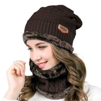 Unisex Winter Knit Beanie Cap Hat Neck Warmer Scarf - Free Size
