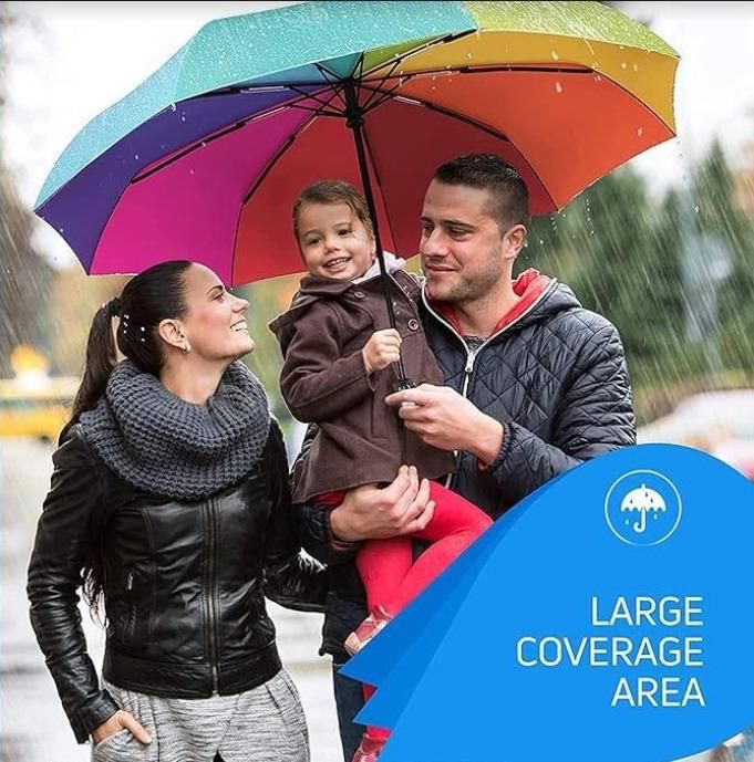 Windproof Rainbow Umberalla Large -3 Fold with Auto Open (Pack Of 1)