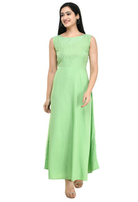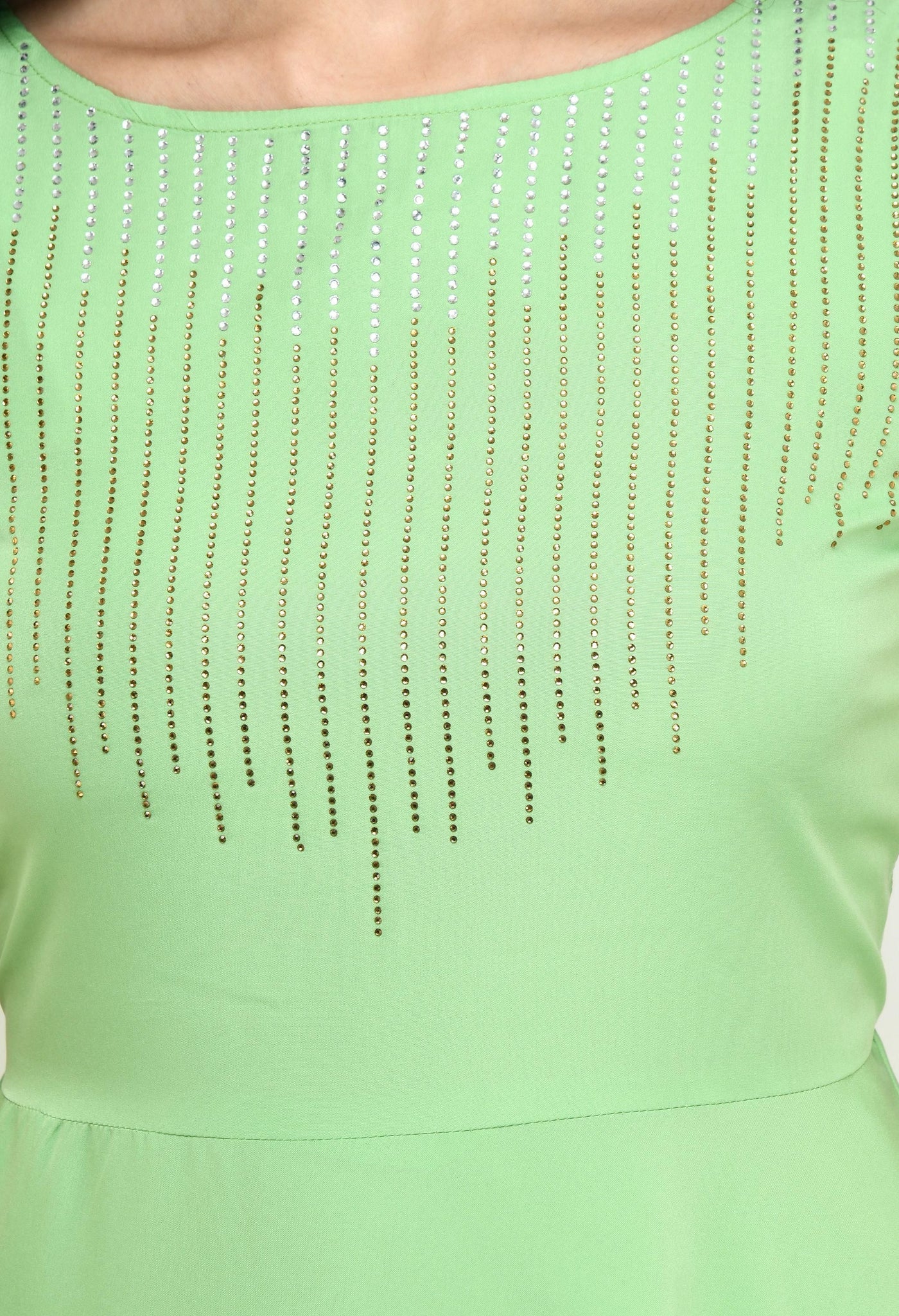 Oceanista Women's Crepe Embellished Partywear Pista Green Maxi Dress