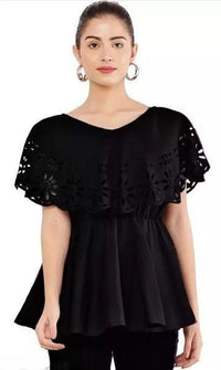 Oceanista Women's Crepe Solid V-Neck Black Top