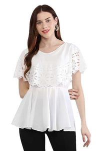 Oceanista Women's Crepe Solid V-Neck White Top - S