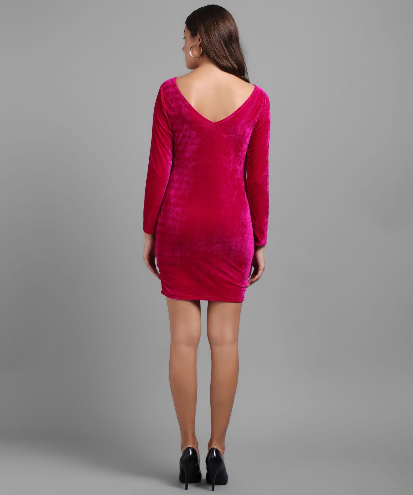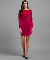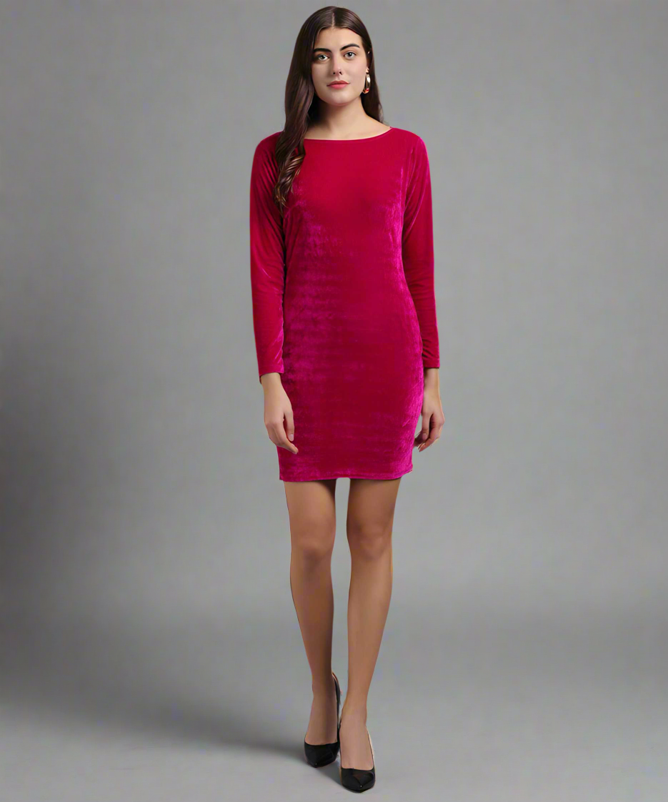 Vivient Women's Solid Pink Velvet Short Dress