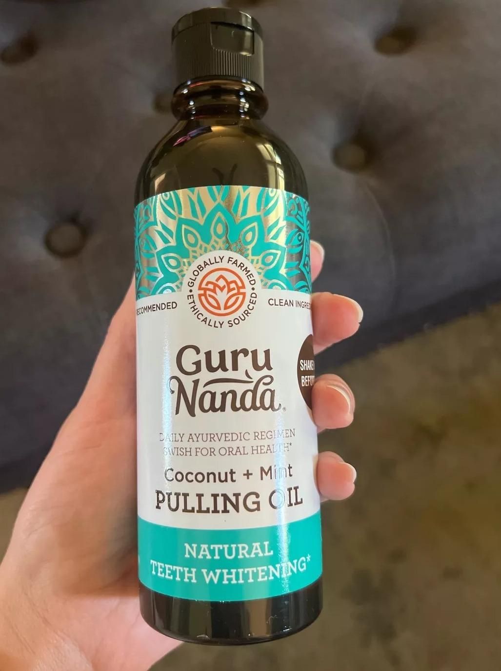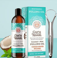 Guru Nanda Coconut & Mint Teeth Whitening Oil with Tongue Scraper 237ml