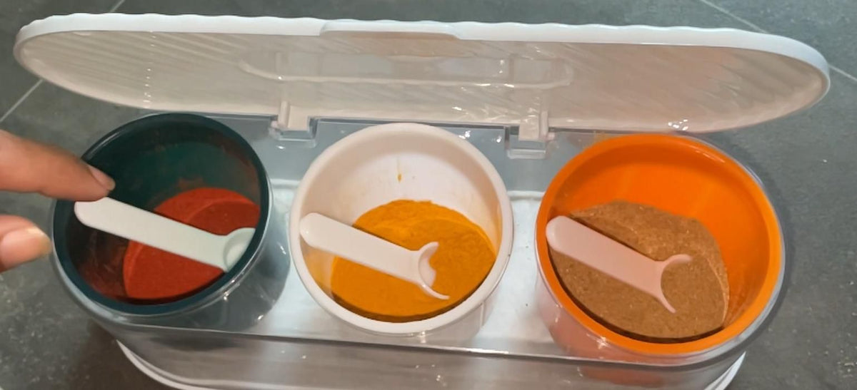 Home Kitchen 3 Grid Seasoning Spice Box Kit with Spoon