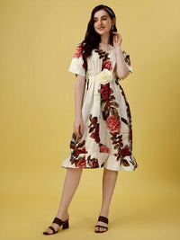Plus Size Women's Crepe Floral Print Flared Midi Dress