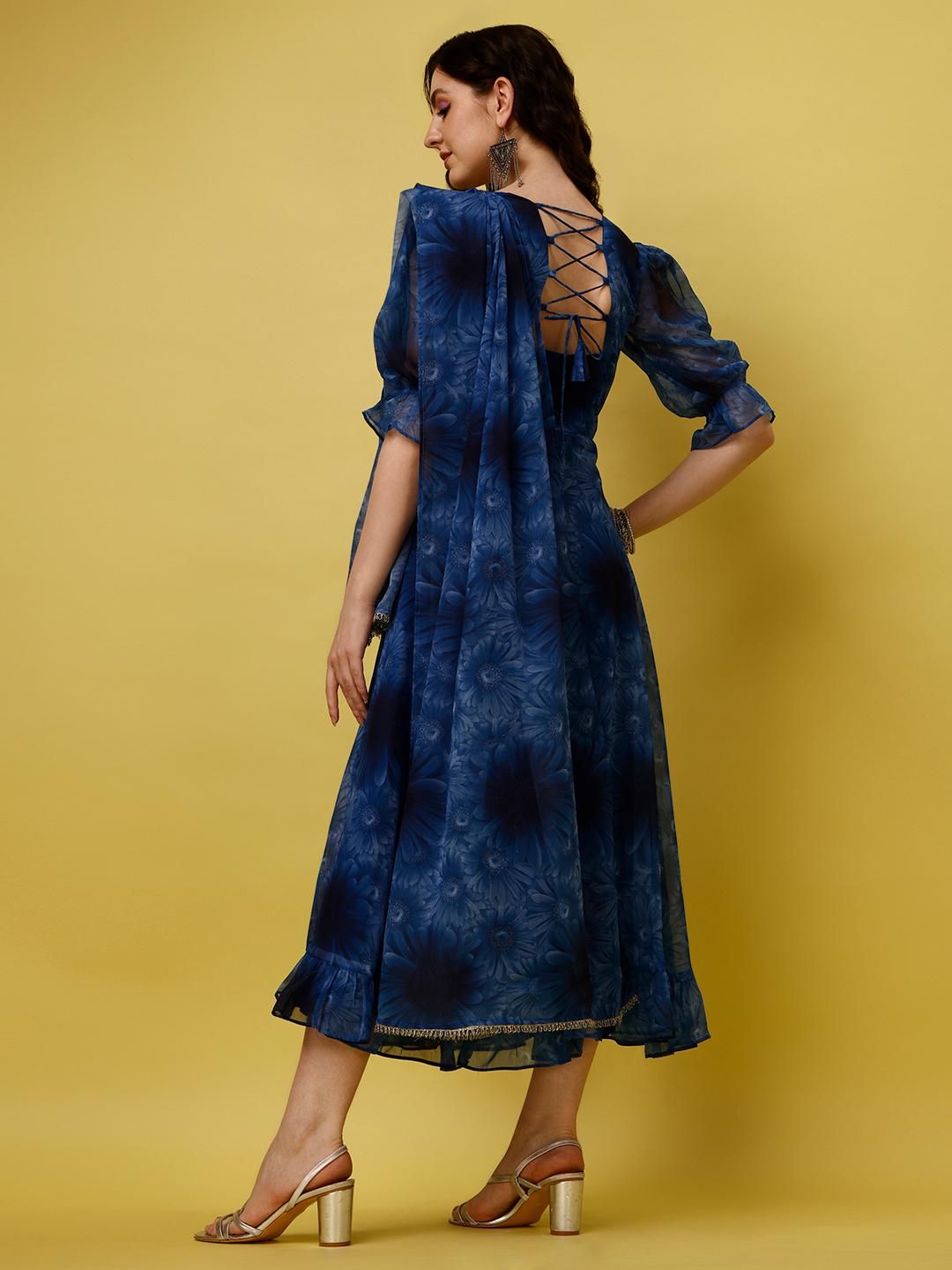 Plus Size Women's Printed Anarkali Kurti & Dupatta Set with Belt